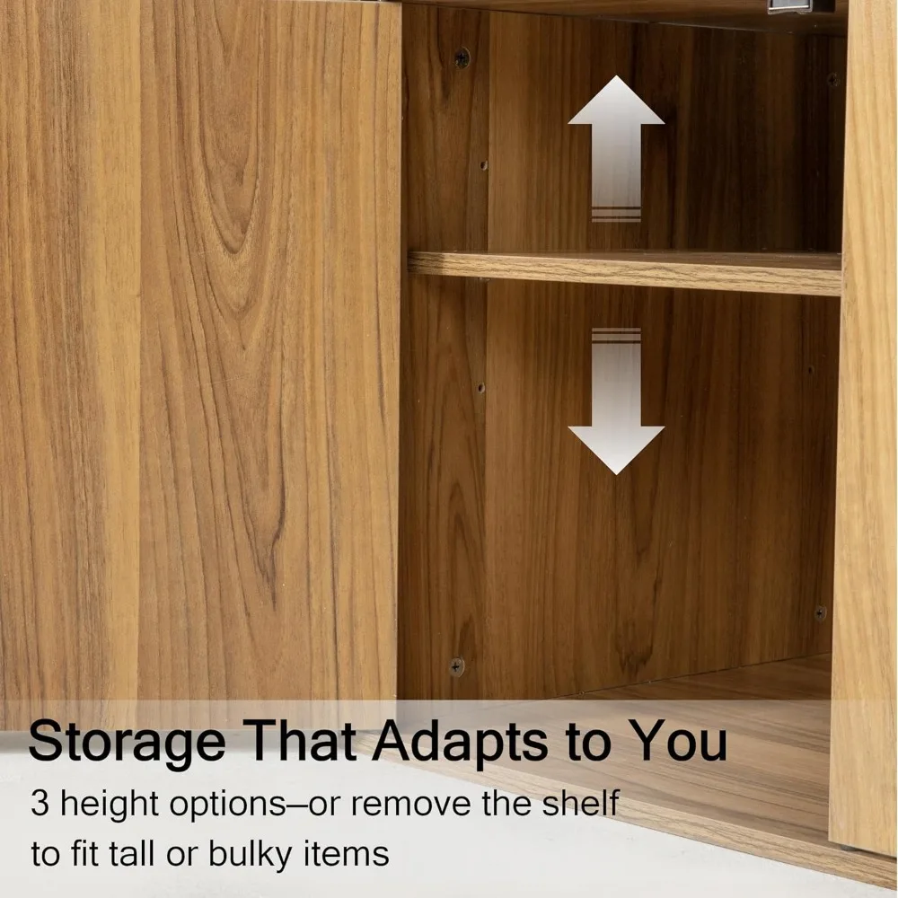 This product is a multifunctional cat litter box enclosure that doubles as a TV stand or hall table, seamlessly integrating into your home decor while hiding the litter box mess. It features a spacious storage compartment that can hold up to 40-50 lbs of cat litter and includes an adjustable divider for organizing other pet supplies like litter liners, cat food, and medications. The enclosed design helps to minimize litter scatter and control odor, keeping your environment tidy. Made from high-quality fiberboard that meets CARB and EPA standards, this enclosure is pet-safe, eco-friendly, and durable. With its country-style aesthetic, it adds a rustic charm to your living space while discreetly concealing the litter box, contributing to a cleaner and more beautiful home.