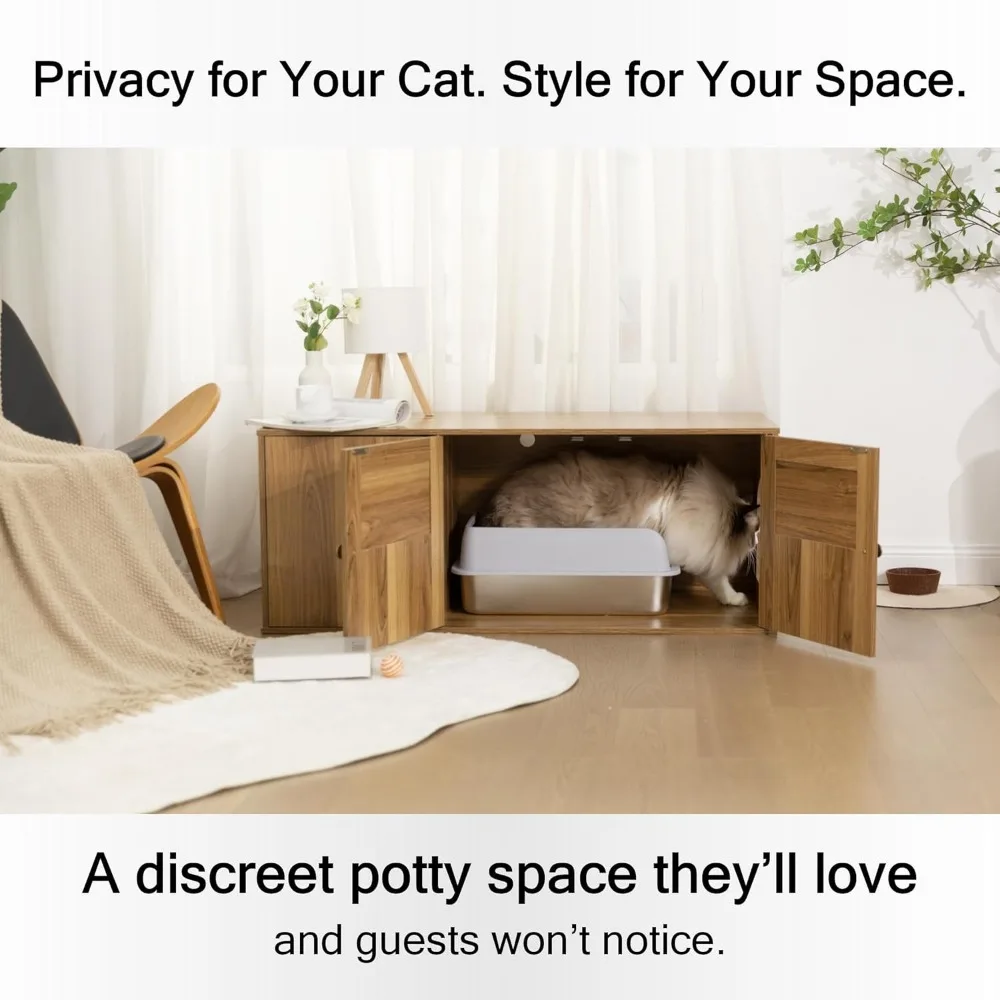 Wooden Cat Litter Box Enclosure with Storage and Adjustable Divider, Concealed Furniture and Hall Table